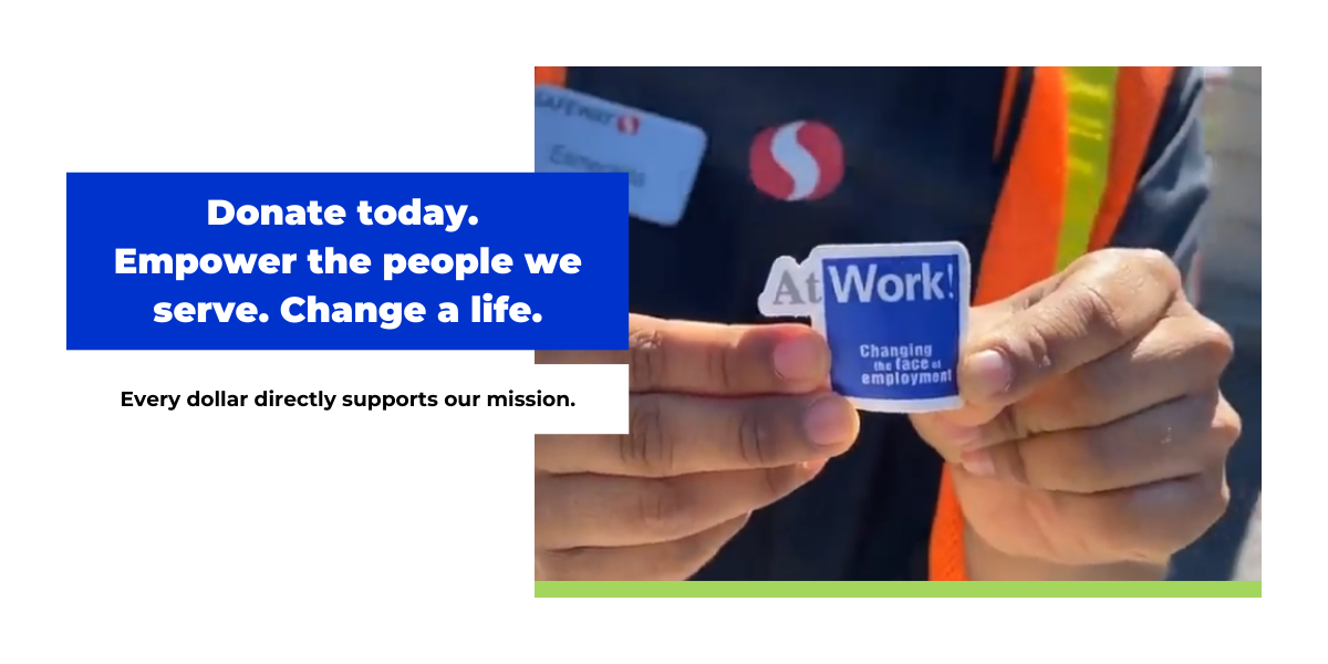 At AtWork!, we are dedicated to empowering individuals with disabilities to achieve their full potential. Your generous donation allows us to continue providing vital services and support to our community. Together, we can make a lasting impact on the lives of those we serve.